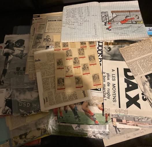 C’était au printemps de l’année 1966. Fluet, avec ma casquette vissée sur la tête, je commençais à peine à user mes fonds de culottes sur les bancs de l’école primaire de Marsac, village niché dans les vallons d’oxygène de la Lomagne Gersoise. Cependant, nous appartenions administrativement au département du Tarn-et-Garonne. Mes parents étaient tous deux issus de modestes familles paysannes installées là depuis plusieurs générations. Ils perpétuaient ainsi ce dur labeur lié à cette terre, qui vous colle aux chaussures, et dont on ne peut se détacher. La grand tante Noémie, employée aux PTT à Paris, descendait à Dax pour y faire une cure thermale. Considérant cette proximité, elle nous incita fortement à lui rendre visite. Vous n’imaginez pas le caractère expéditionnaire que cela prit. Les Landes, c’était le bout du monde, avec ses 180 kms. Au jour J, nous primes la route. La vieille Aronde familiale eut quelques toussotements inquiétants, mais nous arrivâmes à bon port. Noémie, et Robert son compagnon, nous attendaient pour déjeuner. Leur logement se situait en face du stade municipal, baptisé depuis Maurice Boyau, du nom de cet aviateur et international de rugby dacquois, abattu en vol en 1918. Le repas terminé, Robert proposa « d’amener le petit au rugby ». La rencontre opposait L’US DAX à la Section PALOISE. C’était une première pour moi, et je pris ce sport en plein plexus. J’allais le pratiquer quelques années avec gourmandise. Et ce club rouge et blanc, vint lui s’installer à jamais dans mon cœur. Je ne l’ai plus quitté, faisant même des folies pour lui. Avalant des kilomètres de route, des heures de train. Cette passion naquit pourtant au milieu de drames. Le club avait perdu en septembre 1964, trois joueurs dans un accident de la route : Jean OTHATS, Emile CARRERE et Raymond ALBALADEJO. En 1966, lors de cette finale d’une violence extrême, perdue 9-8 contre AGEN, Pierre ALBADEJO vint s’ouvrir la tête contre le trépied d’une caméra. Ce visage ensanglanté me marquera à jamais. Puis ce fut à nouveau une finale perdue contre TARBES en 1973. Au total, cinq finales disputées en l’espace de quinze ans, et autant de défaites. Une véritable malédiction. Entre 1970 et 1980, je faisais largement cliqueter les ciseaux, découpais, collais, élaborais consciencieusement des fiches. En cours de maths, mon activité principale consistait à remplir des cahiers de noms, de tailles et de poids de mes idoles landaises, plongeant dans une totale incompréhension, un professeur qui se donnait pourtant beaucoup de mal. J’avais même trouvé un correspondant dacquois, monsieur Mellac, une connaissance de mes parents installé dans la cité thermale, qui me découpait le lundi les articles du journal Sud-Ouest et me les expédiais soigneusement datés. Nous étions bien loin d’internet et de son immédiateté. C’est à cette même époque qu’une passion pour Joséphine BAKER me gagna. J’archivais, et tirais le moindre fil de tout ce qui était susceptible de me relier à elle. Landes et Milandes faisaient corps. La culture et le rugby s’imbriquèrent à jamais.